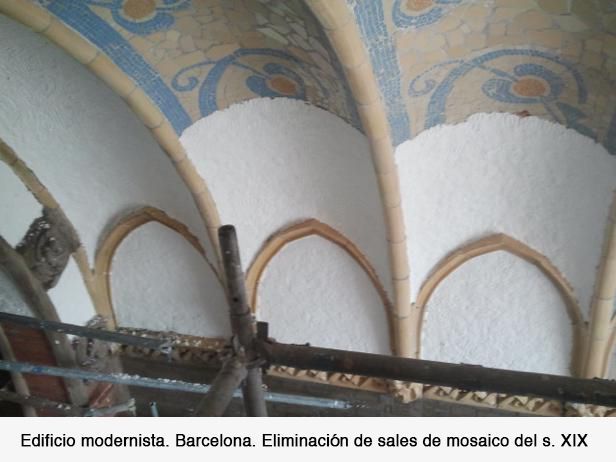 Desmontaje de los azulejos, sí hubiera necesidad de ello, para eliminación de sales, tanto en el muro, como en el azulejo, provocadas por la humedad.